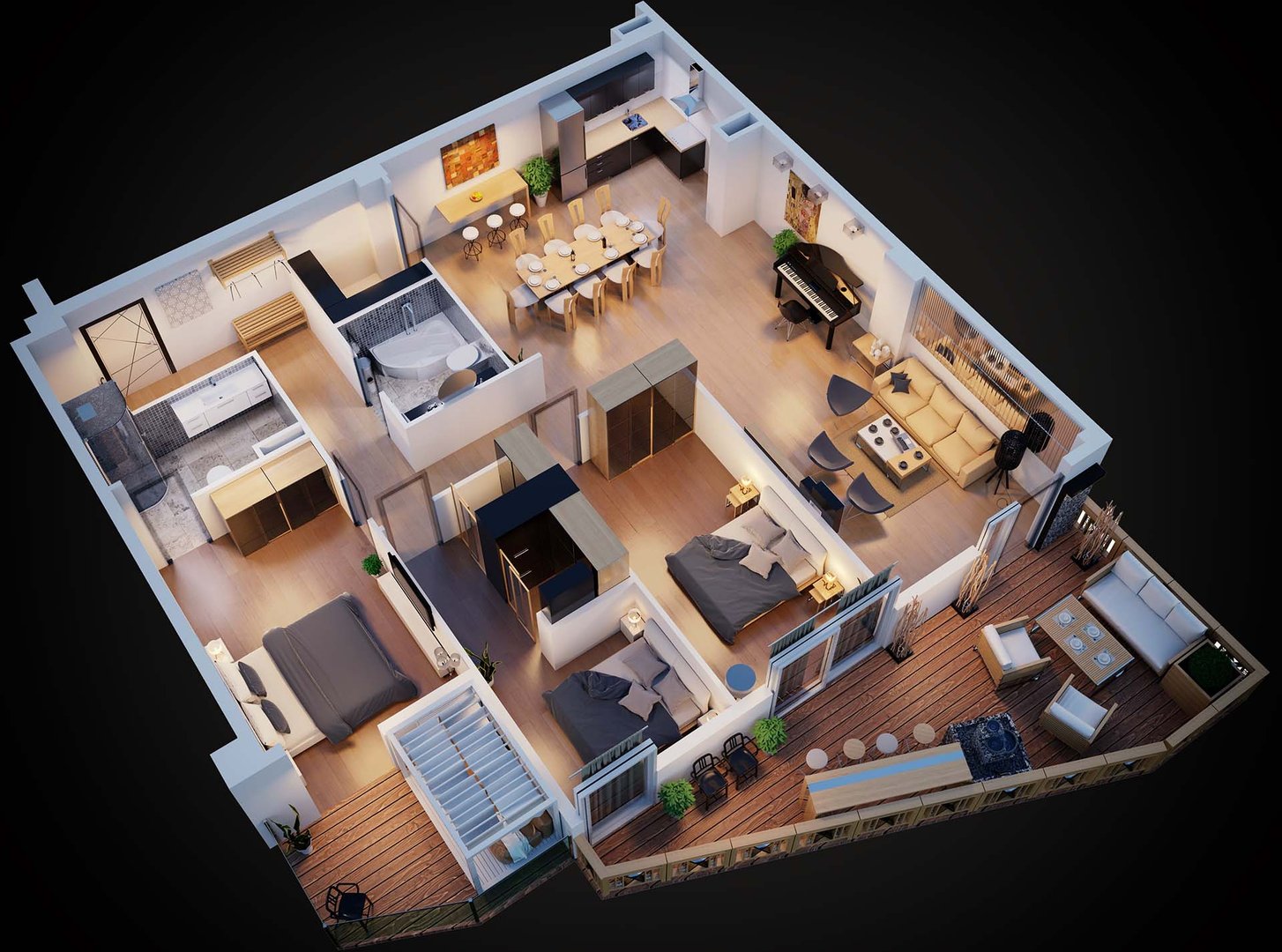 Turn confusing 2D blueprints into clear, furnished 3D top-down views. Perfect for helping buyers understand the flow and scale of a layout instantly.